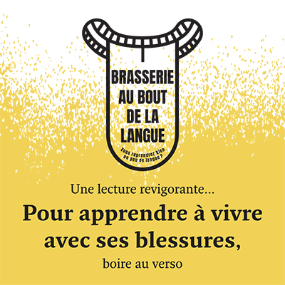 La bibliothérapie à emporter Il arrive parfois qu’un petit vers ne suffise pas. Il faut alors une rasade plus importante et même tout un livre. Ici, la brasserie vous offre des conseils de lectures revigorantes pour tous les gouts ! Précédent Langue à brasser Suivant Tireuses à texte